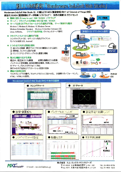 簡単に使える HMLI SCADAソフトウェアサーバ/クライアントも可能なWEB型HMI/SCADAサーバは多くのプラットフォームからの選択が可能。サーバ単体でも動作クライアントも3つ...