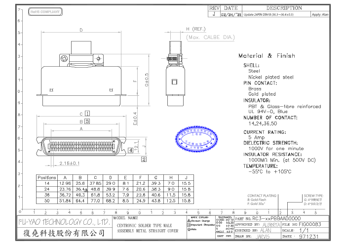 FU-YAO セントロニクスコネクタ RC3-**PBBAAD0001 DDK 57-30140、57-30240、57-3036...