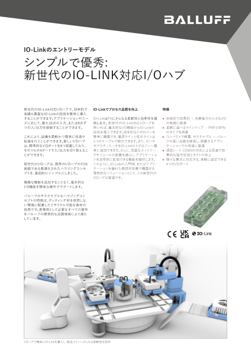 新世代のIO-Link対応I/Oハブで、効率的で実績も豊富なIO-Linkの技術を簡単に導入することができます。アプリケーションやニーズに応じて、最大16点の入力、または8点ずつの入/出...