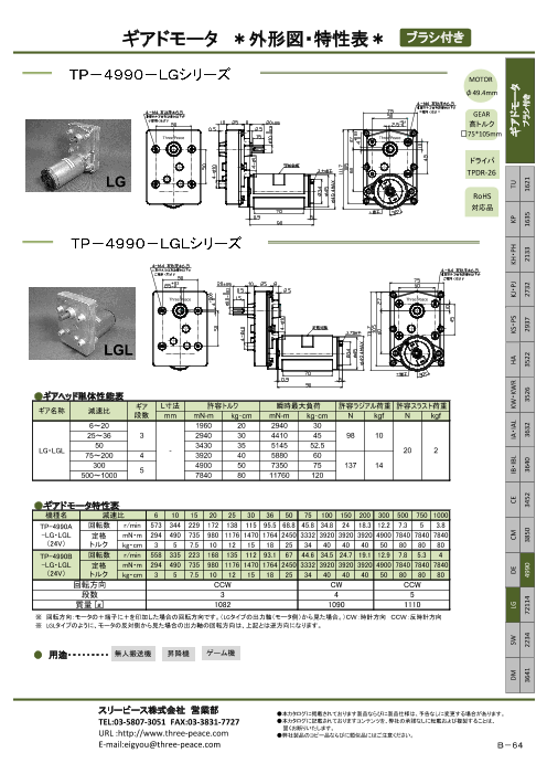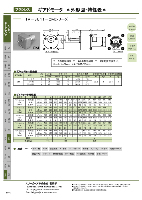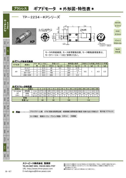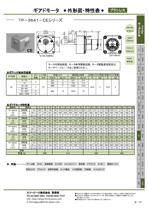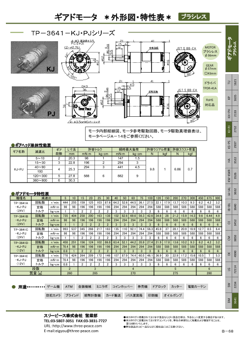 【掲載内容】○型式の表し方○ギア性能一覧○各ギアの構造と特長○ギアドモータの組み合わせ○ブラシ付きギアドモータ○ブラシレスギアドモータ○ギアモータ オプション...