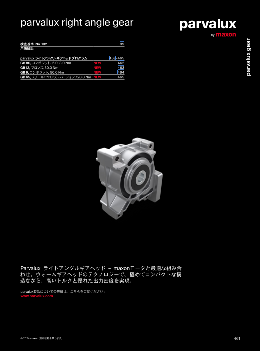 Parvalux ライトアングルギアヘッド – maxonモータと最適な組み合わせ。ウォームギアヘッドのテクノロジーで、極めてコンパクトな構造ながら、高いトルクと優れた出力密度を実現。
