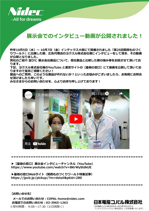 昨年10月5日(水)〜 10月7日(金)インテックス大阪にて開催されました『第25回関西ものづくりワールド』に出展した際、広告代理店のヨクスル株式会社様にインタビューをして頂...