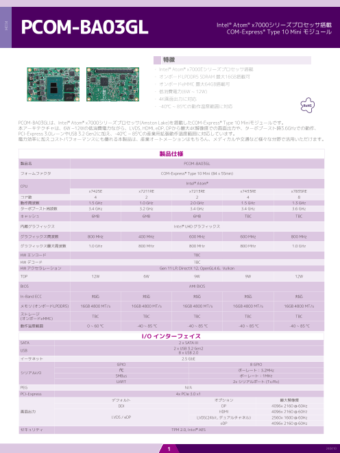 PCOM-BA03GLは、Intel® Atom® x7000シリーズプロセッサ(Amston Lake)を搭載したCOM-Express® Type 10 Miniモジュールです。本アーキテクチャは、6W ~12Wの低消費電力ながら、L...