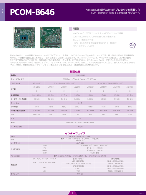 PCOM-B646は、Intel最新のAmston Lake世代のプロセッサを搭載したCOM-Express® Type 6モジュールです。最大TDPは15Wと低消費電力ながら、一部動作温度拡張にも対応し、様々な...