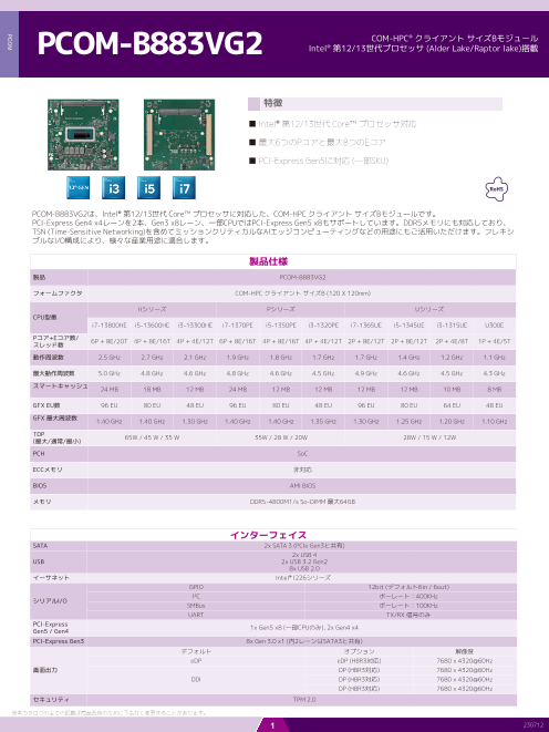 PCOM-B883VG2は、Intel® 第12/13世代 Core™ プロセッサに対応した、COM-HPC クライアント サイズBモジュールです。PCI-Express Gen4 x4レーンを2本、Gen3 x8レーン、一部CPUで...