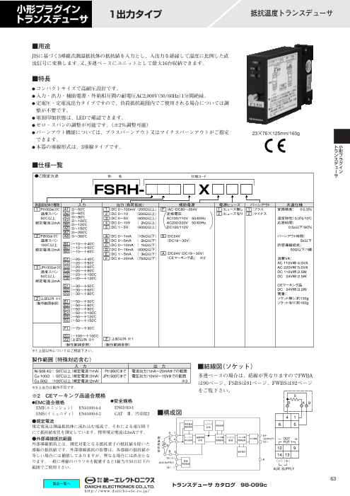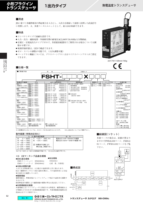 小形プラグイントランスデューサ 熱電温度トランスデューサ 1出力形 FSHT