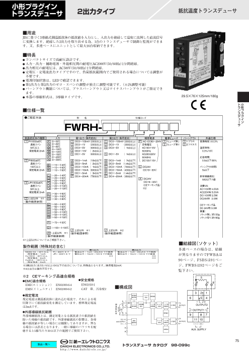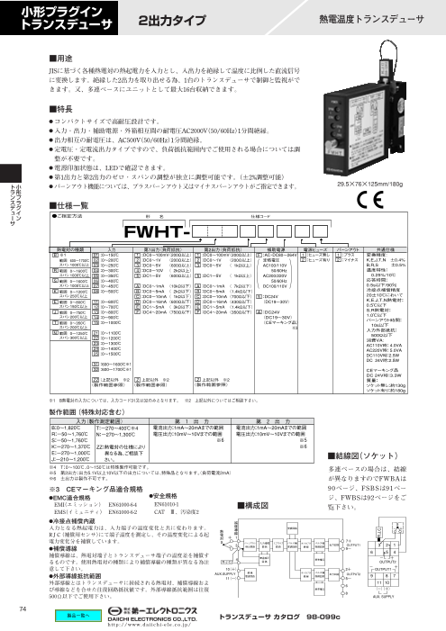 小形プラグイントランスデューサ 熱電温度トランスデューサ 2出力形 FWHT