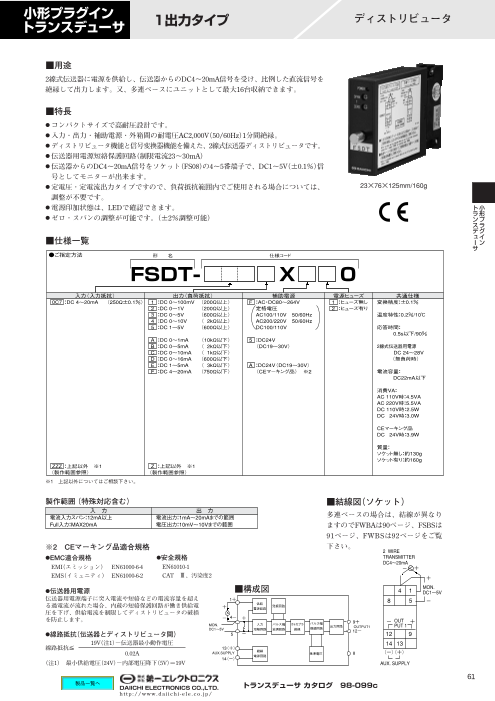 小形プラグイントランスデューサ ディストリビュータ 1出力形 FSDT