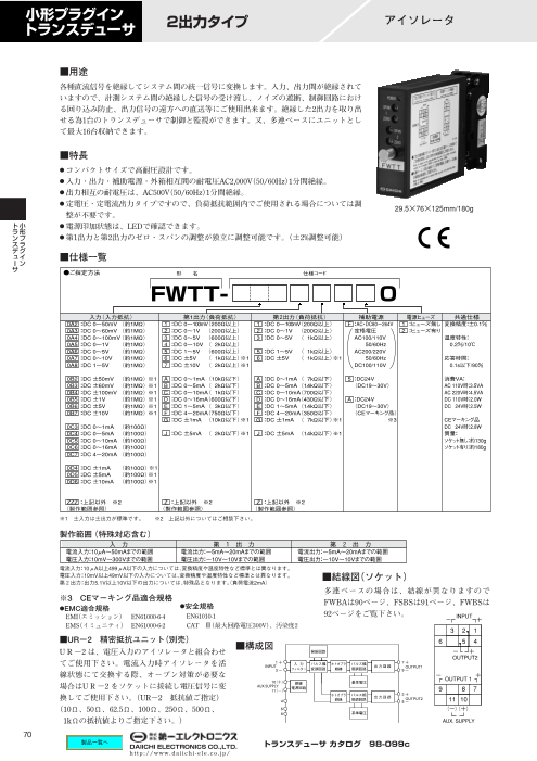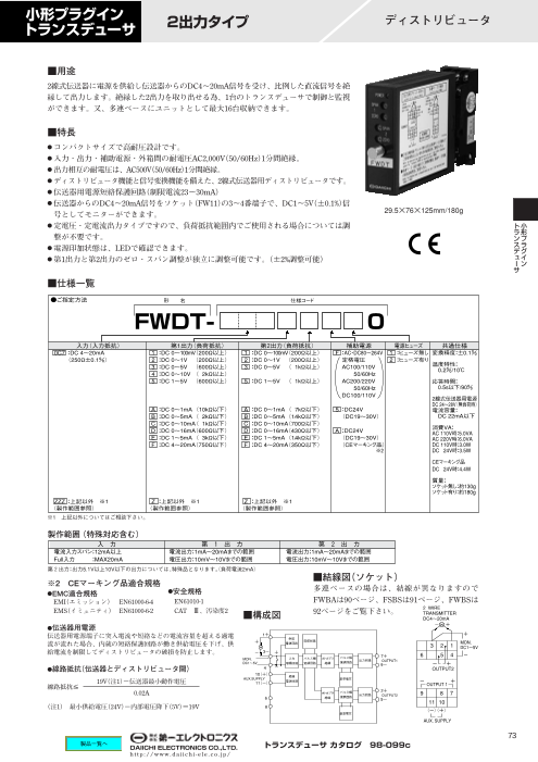 小形プラグイントランスデューサ ディストリビュータ 2出力形 FWDT