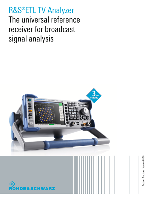 The R&S ETL TV analyzer stands for all-in-one.The R&S ETL combines the functionality of a TV and sound broadcasting signal analyzer, a video and MPEG TS analyzer and...
