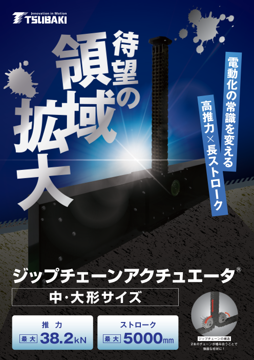 ジップチェーンアクチュエータは、ジップチェーンを使った直動機器として製品化したものです。ジップチェーンとは、2本のチェーンがジッパーのように噛み合い、1本の強固な棒状...