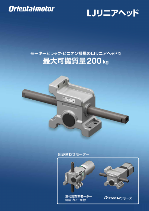 最大可搬質量200 kgのリニアヘッドをラインアップ。ラック・ピニオン機構のLJリニアヘッドは、平行軸ギヤヘッド+モーターに装着することで押す、引く、上げる、下げるなどの...