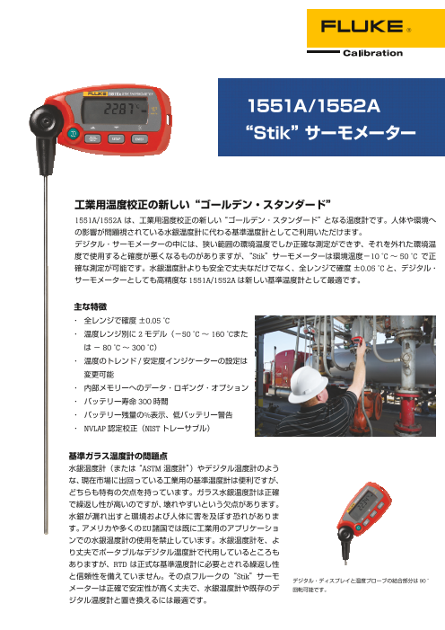 1551A/1552A は、工業用温度校正の新しい“ゴールデン・スタンダード”となる温度計です。人体や環境への影響が問題視されている水銀温度計に代わる基準温度計としてご利用い...