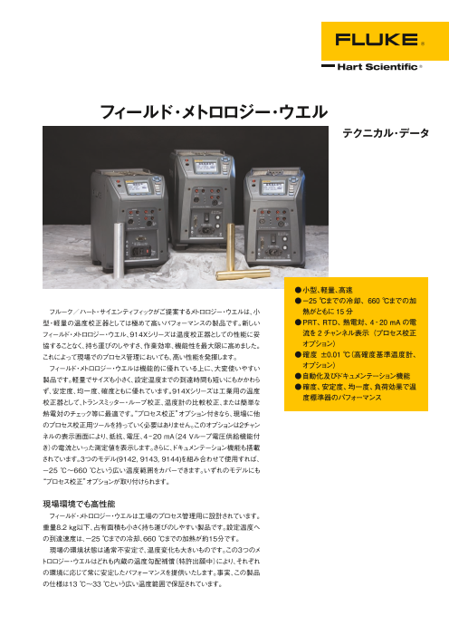 フルーク・キャリブレーションの 9190A Ultra-Cool Drywell (以降「本製品」ま たは「本校正器」) は、高精度温度計を −95 °C ~ 140 °C で校正できるベン チトップ型...