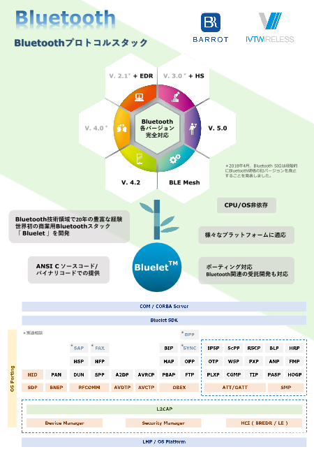 組み込み向けのBluetoothプロトコルスタック「Bluelet」は、150社に2000万台採用され...
