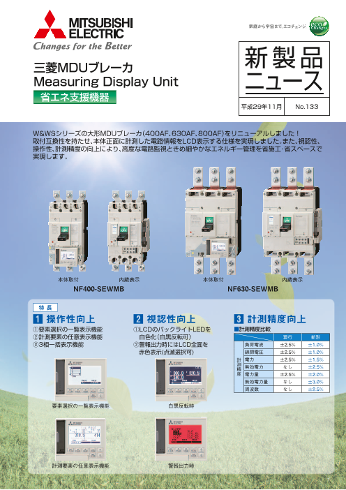 電路情報を計測・表示・伝送するMDU(Measuring Display Unit)計測表示ユニットと遮断器を一体化した遮断器(ノーヒューズ遮断器・漏電遮断器・漏電アラーム遮断器)です。...