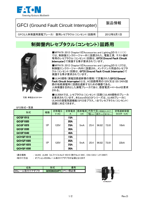 ■UL943規格(漏電回路遮断器の規格)で定義された GFCI(Ground Fault Circuit Interrupter)とは、AC回路専用の120V又は 120/240V回路の地絡漏電時に回路を遮断するための機...