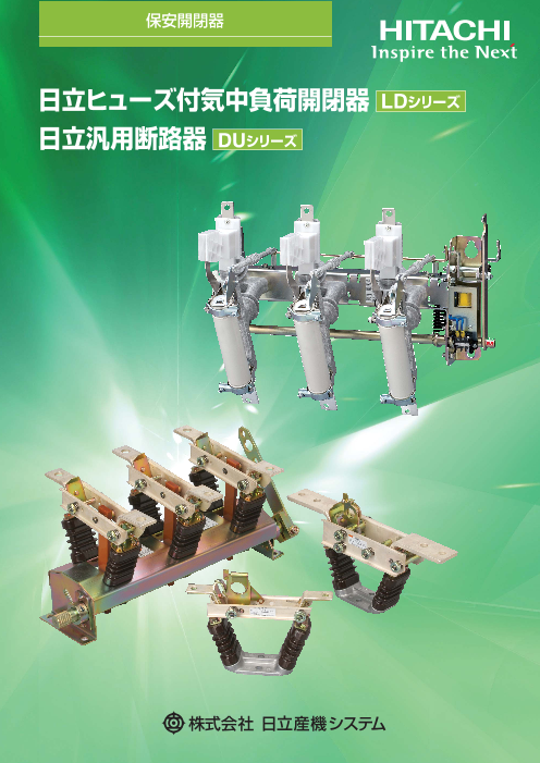 日立ヒューズ付気中負荷開閉器 LDシリーズ・欠相防止、全領域遮断が可能・小形軽量で1人で取付けが可能日立汎用断路器 DUシリーズ・小型・軽量・取扱いが容易・キュ...