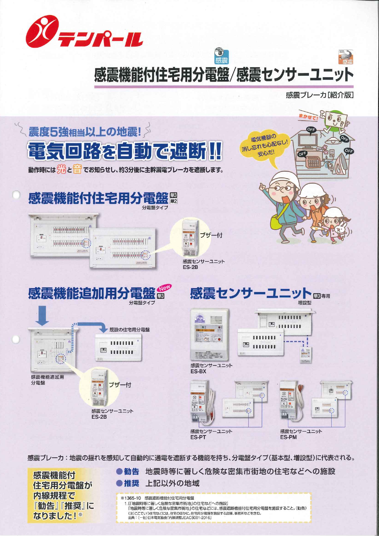 【特徴】・動作時には光と音でお知らせし、約3分後に主幹漏電ブレーカを遮断します。・既設の住宅用分電盤に後から取り付けて感震機能を実現!