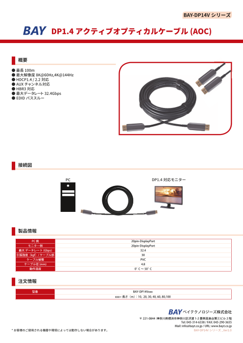 DP1.4 アクティブオプティカルケーブル (AOC)