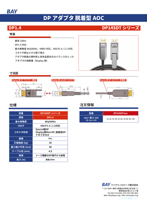 ● 最長100m● 最大解像度8K@60Hz,4K@144Hz● HDCP1.4 / 2.2 対応● AUX チャンネル対応● HBR3 対応● 最大データレート32.4Gbps● EDID パススルー