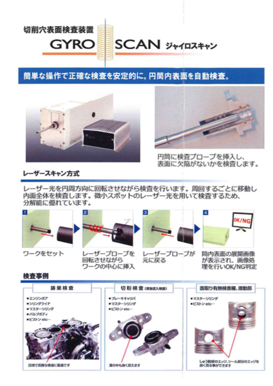 シリンダ内の鋳巣・傷を目視検査している御客様へ!検査員の習熟度によるバラツキに困っていませんか?検査員が突然退職!?困りますよね・・・ジャイロスキャンを導入し、...