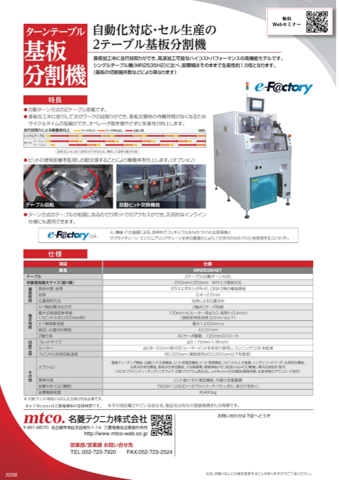 高生産性を追求したルーター式分割機こんなお客様におすすめ→・日々の生産枚数が多い ・機種切り替えを頻繁に行うような生産形態《特長》...