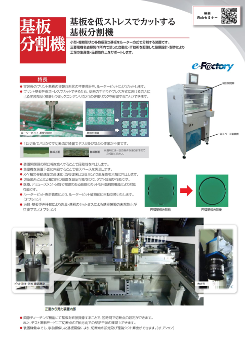 《特長》・小型基板をツインテーブルにて高速切断・切断厨に基板の供給排出が可能・画像処理機能搭載で切断位置自動補正・QRコードにて切断プログラム自動切替標準装備...