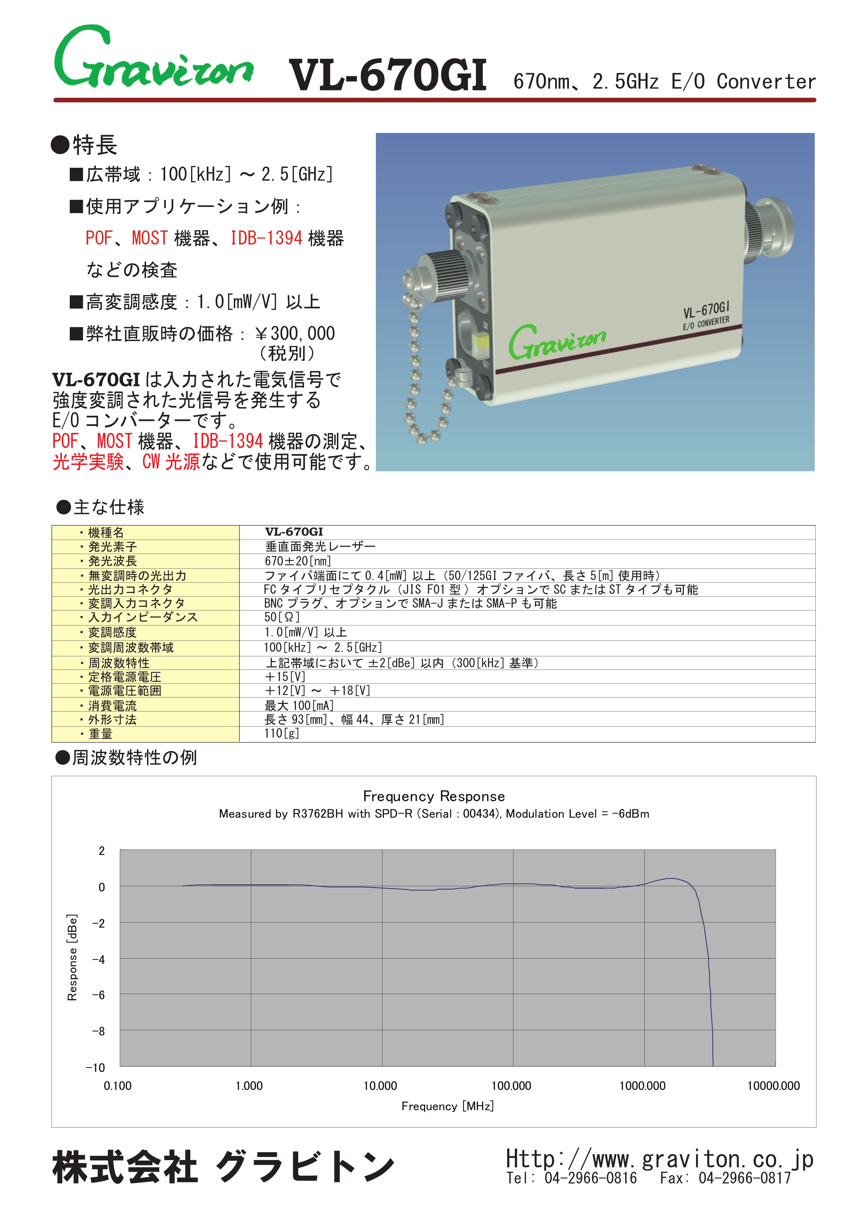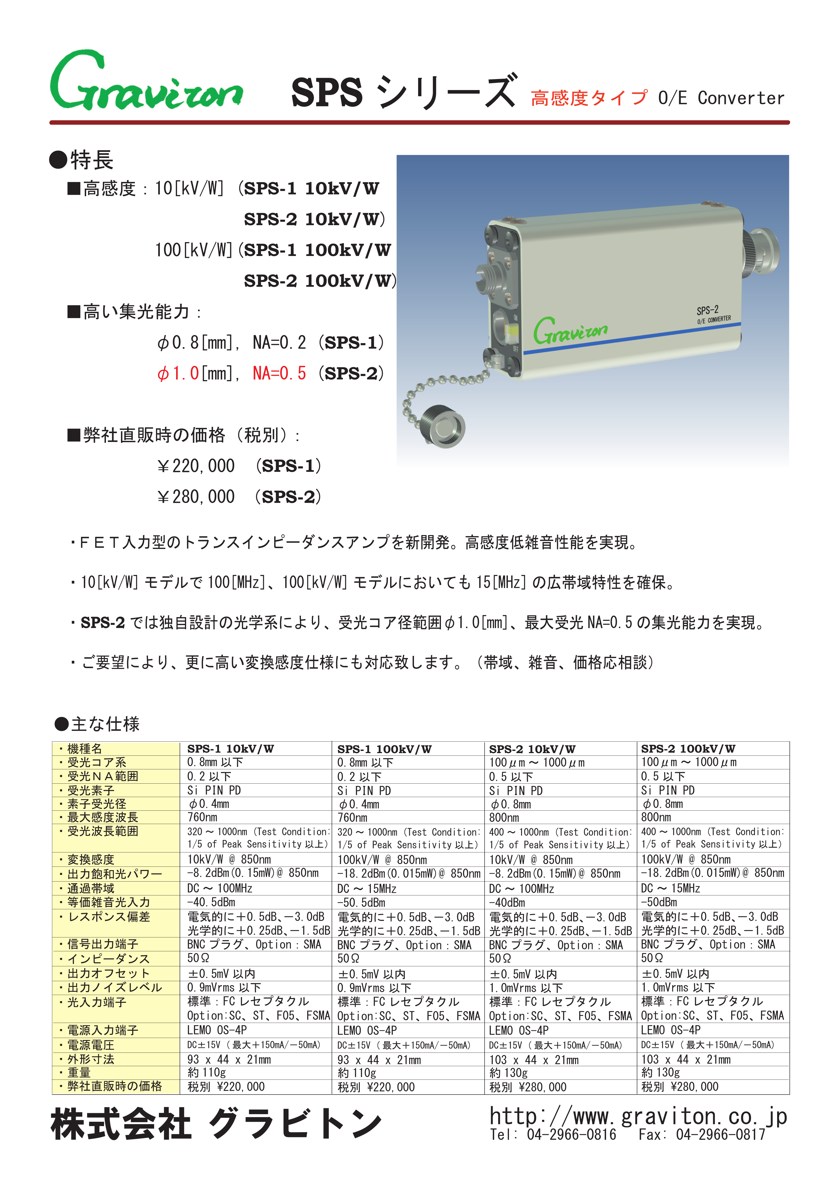 ・グラビトンのO/Eコンバーターは、あなたの電子計測器を光計測器に変えます。・お手持ちのオシロスコープやスペクトラムアナライザの入力端子に装着する事で、簡単に光計測を...