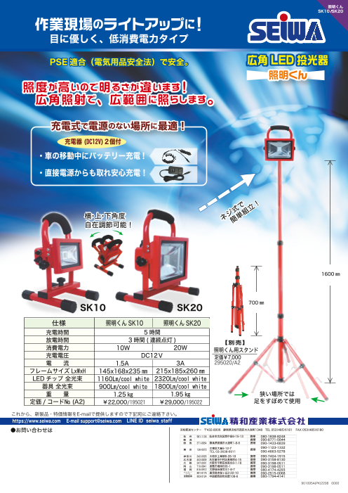 照明くん SK-10/SK-20・目にやさしく、低消費電力タイプ・照度が高いので明るさが違う・充電式で電源のない場所でもOK!・PSE(電気用品安全法)で安全に使用できる・...