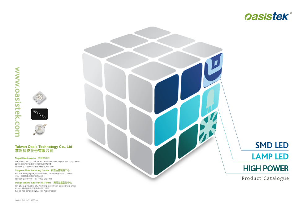 Oasistek (台湾オアシス)製、SMD LED、LAMP LED、HIGH POWER の製品カタログです。