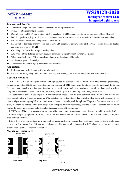 Normand Electronic ノルマンド電子 (中国深セン) IC内蔵デジタルLED WS2812B-2020 ...
