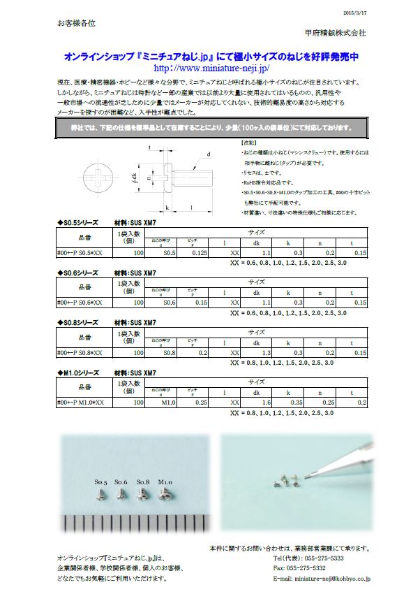 六角穴付きスリムヘッドこねじ省スペース化・軽量化の実現●六角穴付きスリムヘッドこねじの特長・頭部が平らなので取付時の出っ張りが気になりません!・板が薄く、皿...