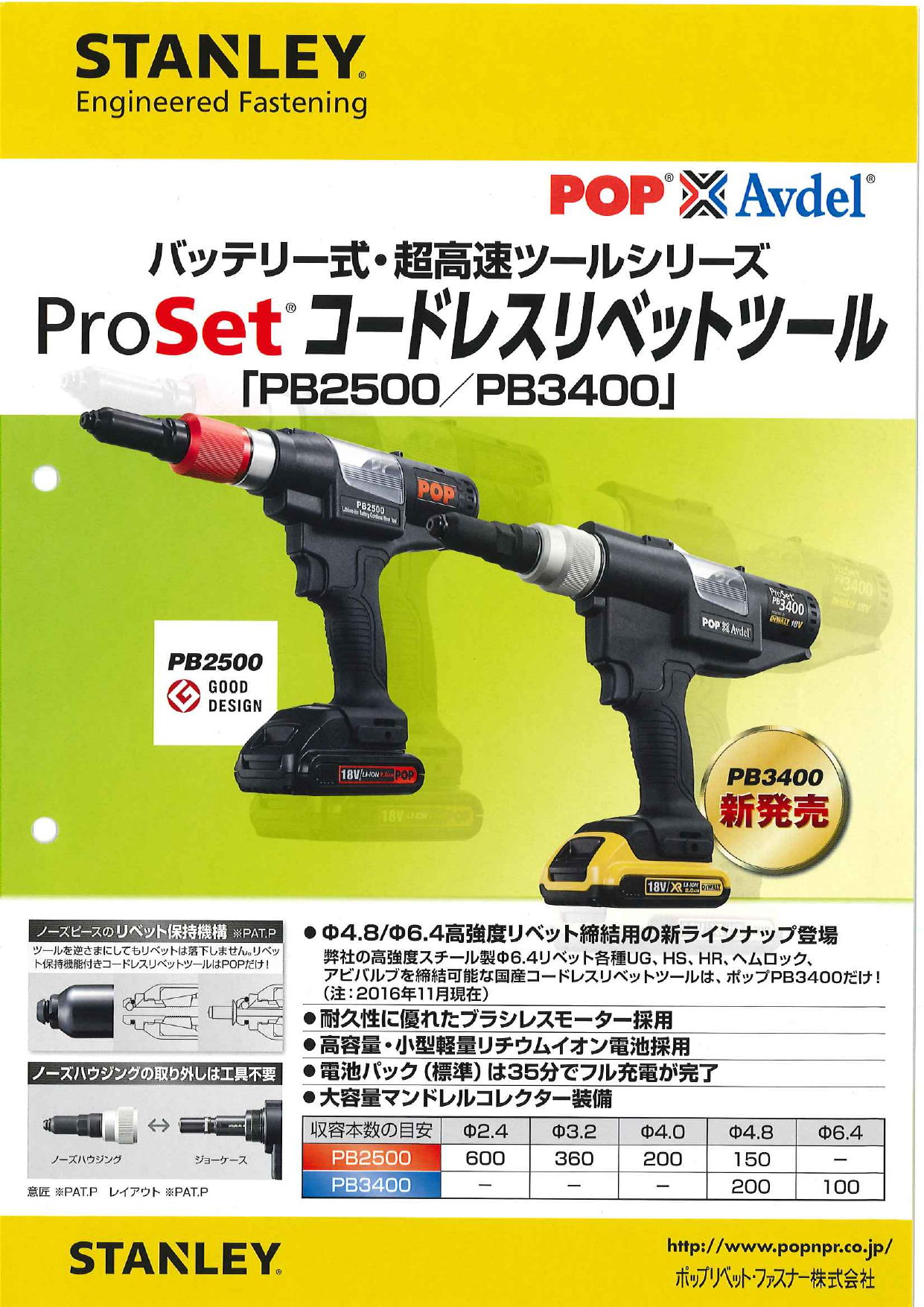 ProSet(R) コードレスリベットツール「PB2500/PB3400」 カタログのご案内です。