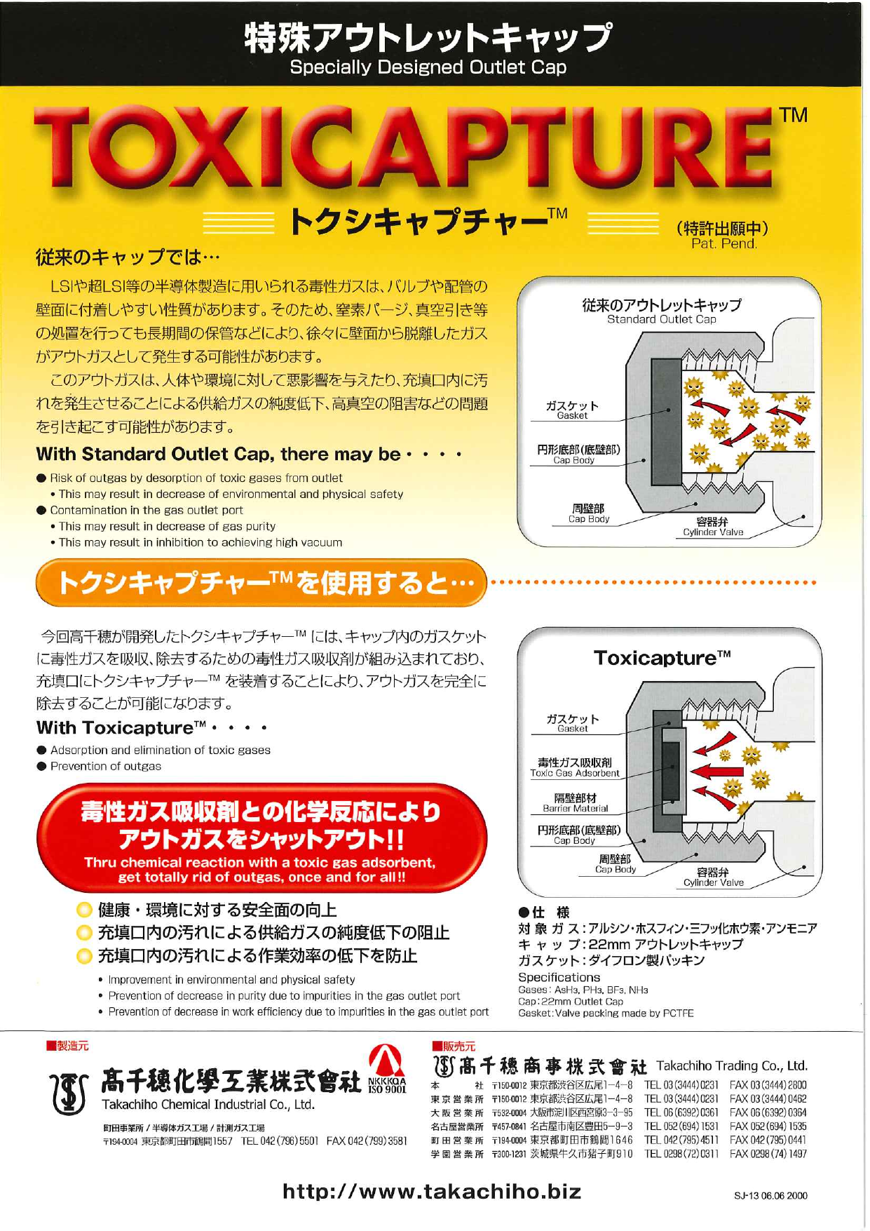 キャップ内のガスケットに毒性ガスを吸収、除去するための毒性ガス吸収剤が組み込まれており、充填口にトクシキャプチャ―を装着することにより、アウトガスを完全に除去すること...