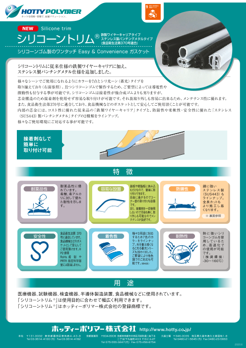 エッジを保護し、シール部分がある製品は、気密性や水密性及び防塵機能を兼ね備えています。加えてシリコーンゴムの特性である高耐熱性、高耐薬品性、高寿命なトリムの製作を...