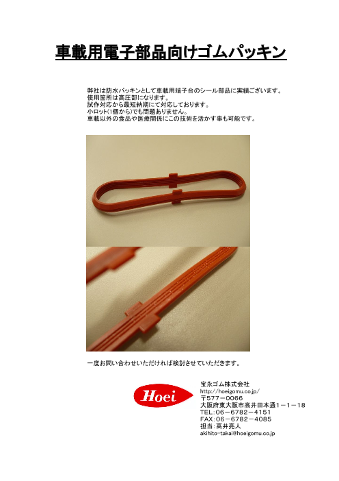 弊社は防水パッキンとして車載用端子台のシール部品に実績がございます。