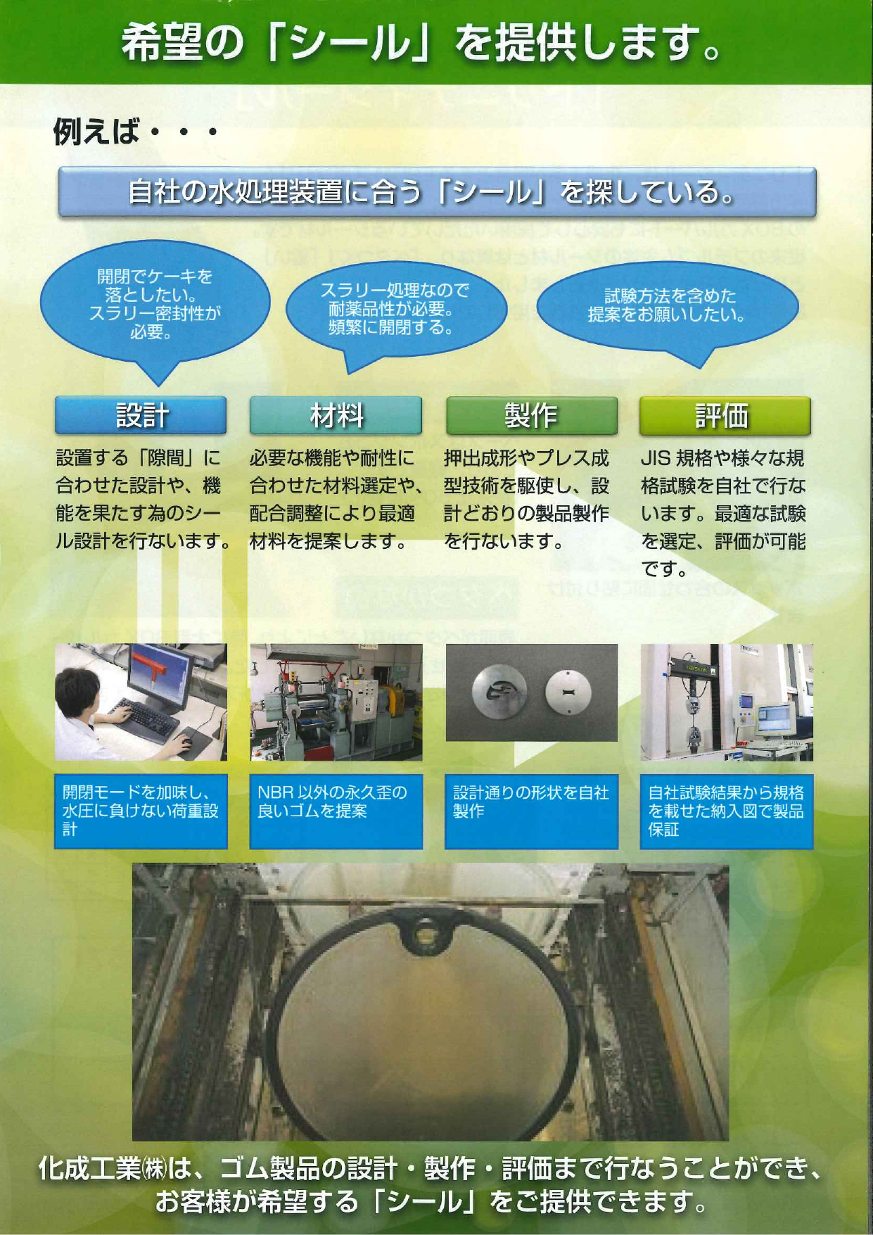 化成工業(株)は、ゴム製品の設計・製作・評価まで行なうことができ、お客様が希望する「シール」をご提供できます。トリニティシールは、化成工業が得意とするEPDMスポン...
