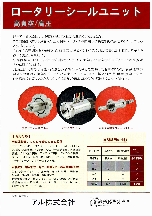 この業務提携により真空及び圧力回転シーリングの開発及び製造を更に強化することができるようになりました。これまでの密閉装置(機械方式、磁性流体方式)に比べて、はるかに...