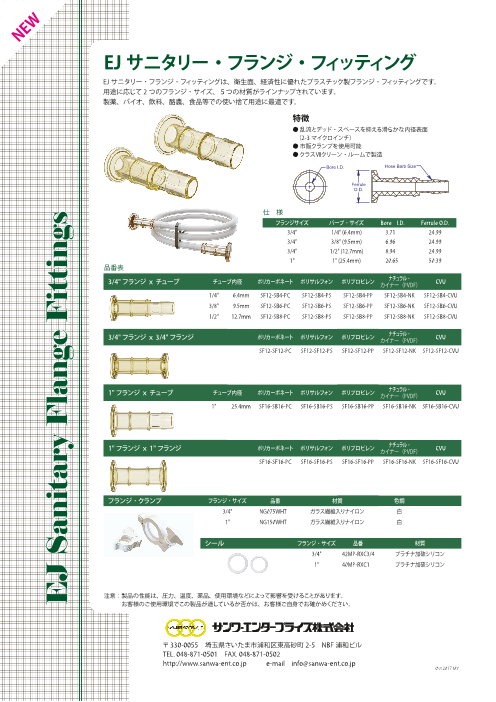EJサニタリー・フランジ・フィッティングは、衛生面、経済性に優れたプラスチック製フランジ・フィッティングです。用途に応じて2 つのフランジ・サイズ、5つの材質がラインナ...