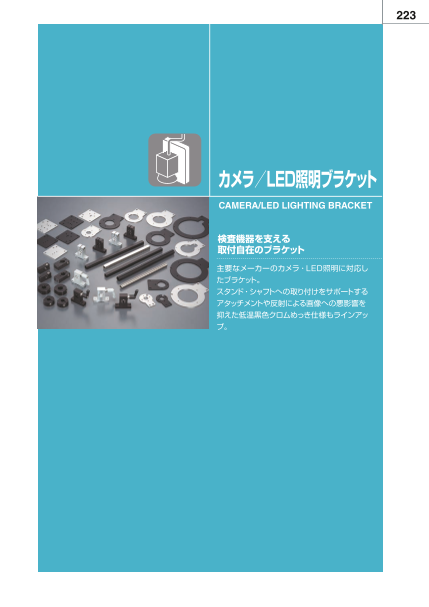 産業用カメラ、LED照明用の取付金具を標準化。パーツを選んで簡単に組み立てが可能です。また標準品の販売のほかに、特注の対応も承っております。是非、お気軽にご相談く...
