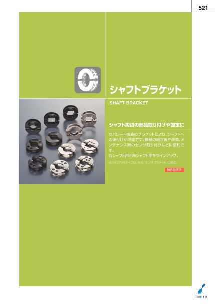 セパレート構造のブラケットにより、シャフトへの後付けが可能です。機械の組立後や改造、メンテナンス時のセンサ取り付けなどに便利です。丸シャフト用と角シャフト用をラ...