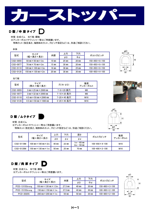 掲載製品・D型/中空タイプ・D型/ムクタイプ・D型/肉厚タイプ・D型/クッション内蔵タイプ・角型/中空タイプ・角型/ムクタイプ・角型/ムクタイプ( リプロテクター...