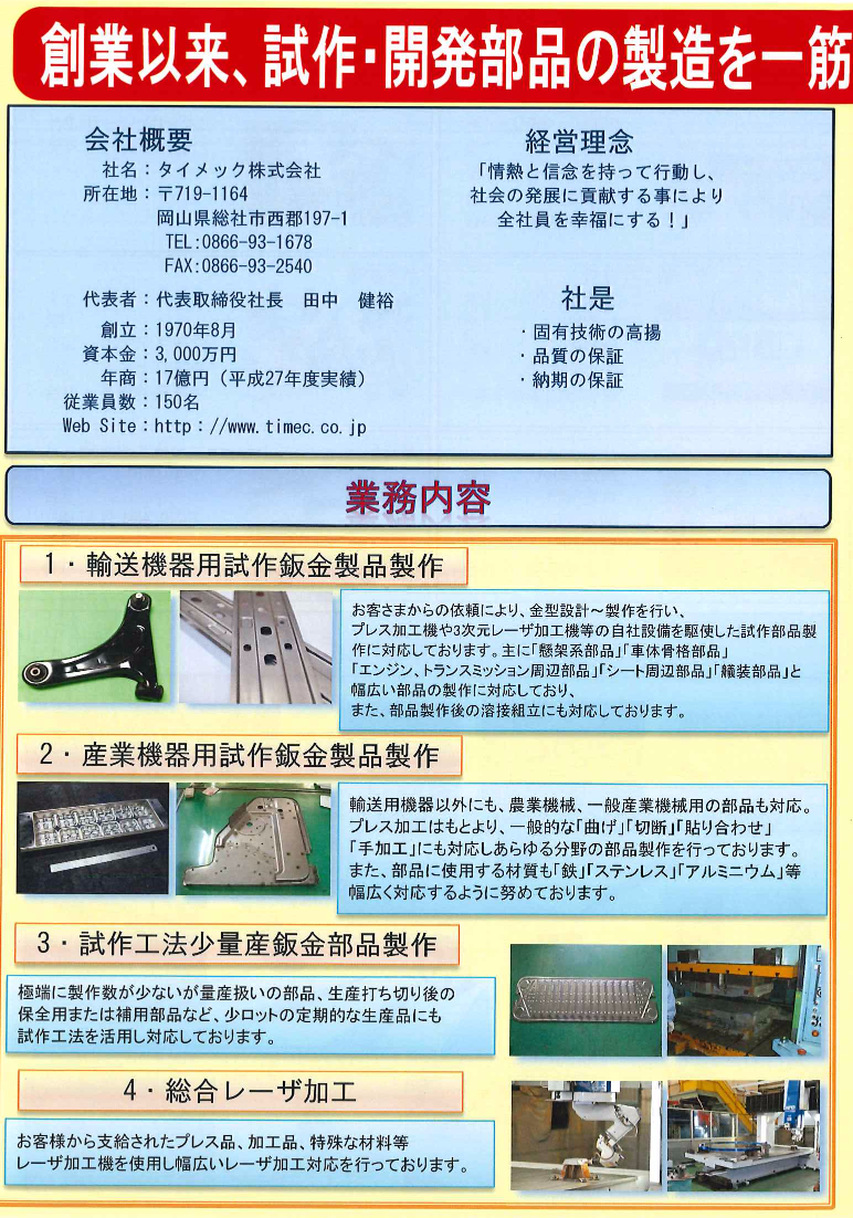 創業以来、試作・開発部品の製造を一筋に40年、信頼の「タイメック・クオリティー」