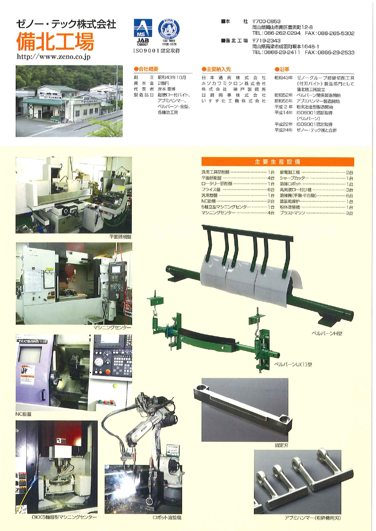 掲載内容・会社概要・経営理念・沿革・業務内容・業務別売上構成比率・ISO認証取得・工場紹介、所在地・主要設備紹介 など