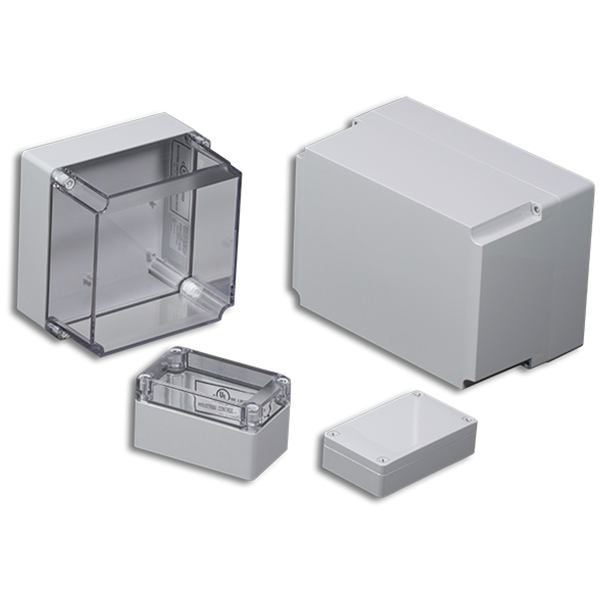 強度・耐熱・難燃性に優れたポリカーボネート製、IP65の開閉式プラスチックボックス