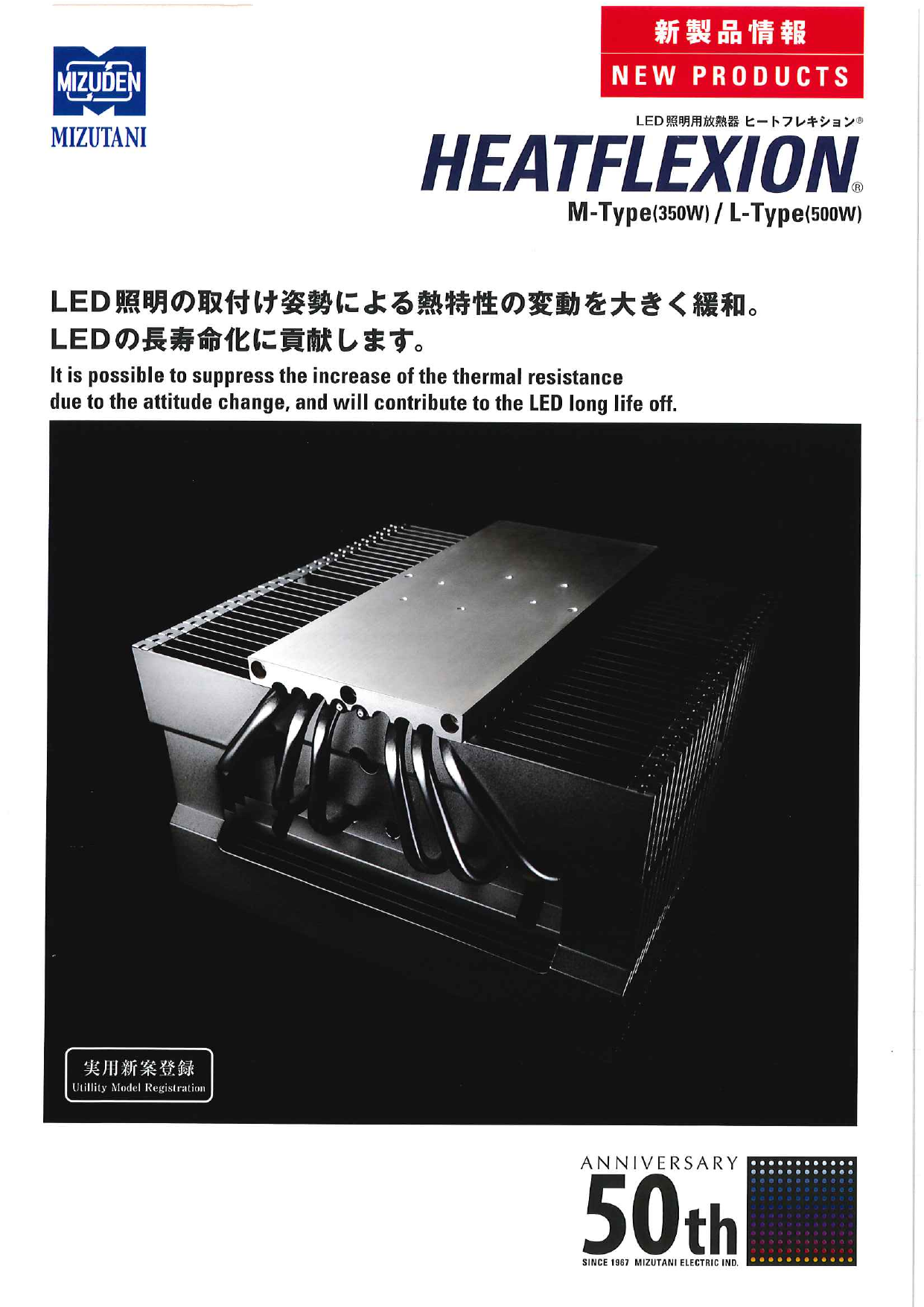 LED照明の取付け姿勢による熱特性の変動を大きく緩和。LEDの超寿命化に貢献します。