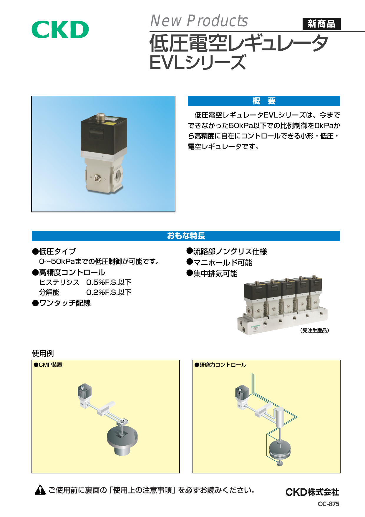 低圧電空レギュレータEVLシリーズは、今までできなかった50kPa以下での比例制御を0kPaから高精度に自在にコントロールできる小形・低圧・電空レギュレータです。 ◆低圧タイ...