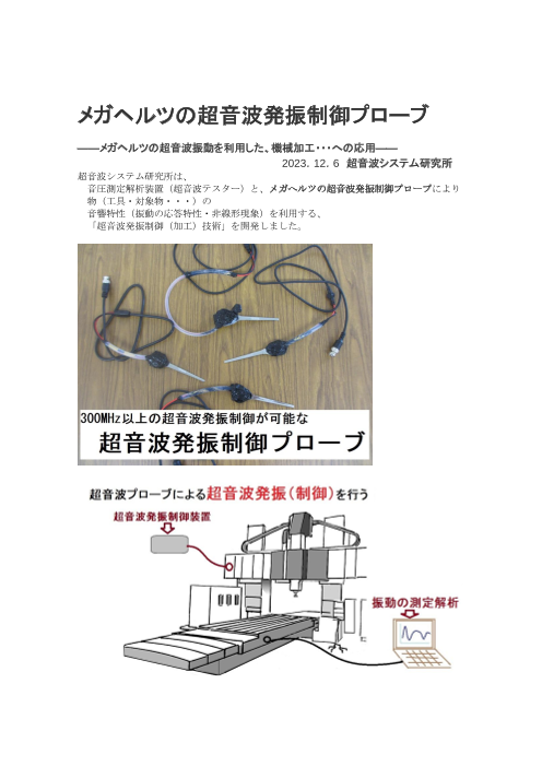 超音波システム研究所は、音圧測定解析装置(超音波テスター)と、メガヘルツの超音波発振制御プローブにより物(工具・対象物・・・)の音響特性(振動の応答特性・非線...