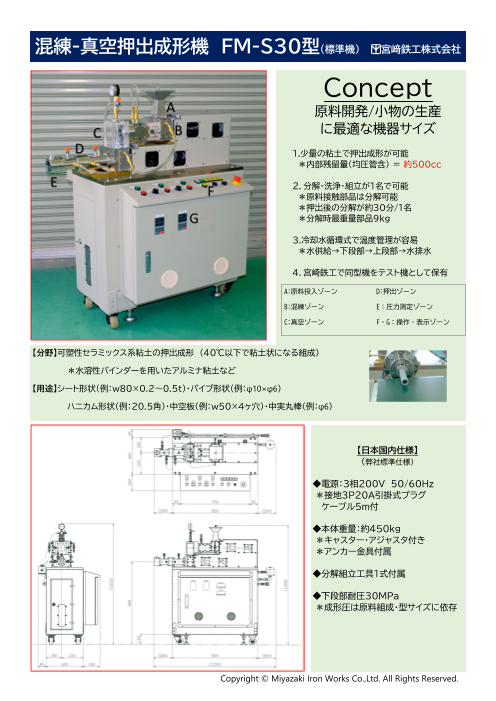 少量の粘土で押出成形が可能分解・洗浄・組立が1名で可能冷却水循環式で温度管理が容易宮崎鉄工で同型機をテスト機として保有◆詳細はカタログをダウンロードしご覧い...